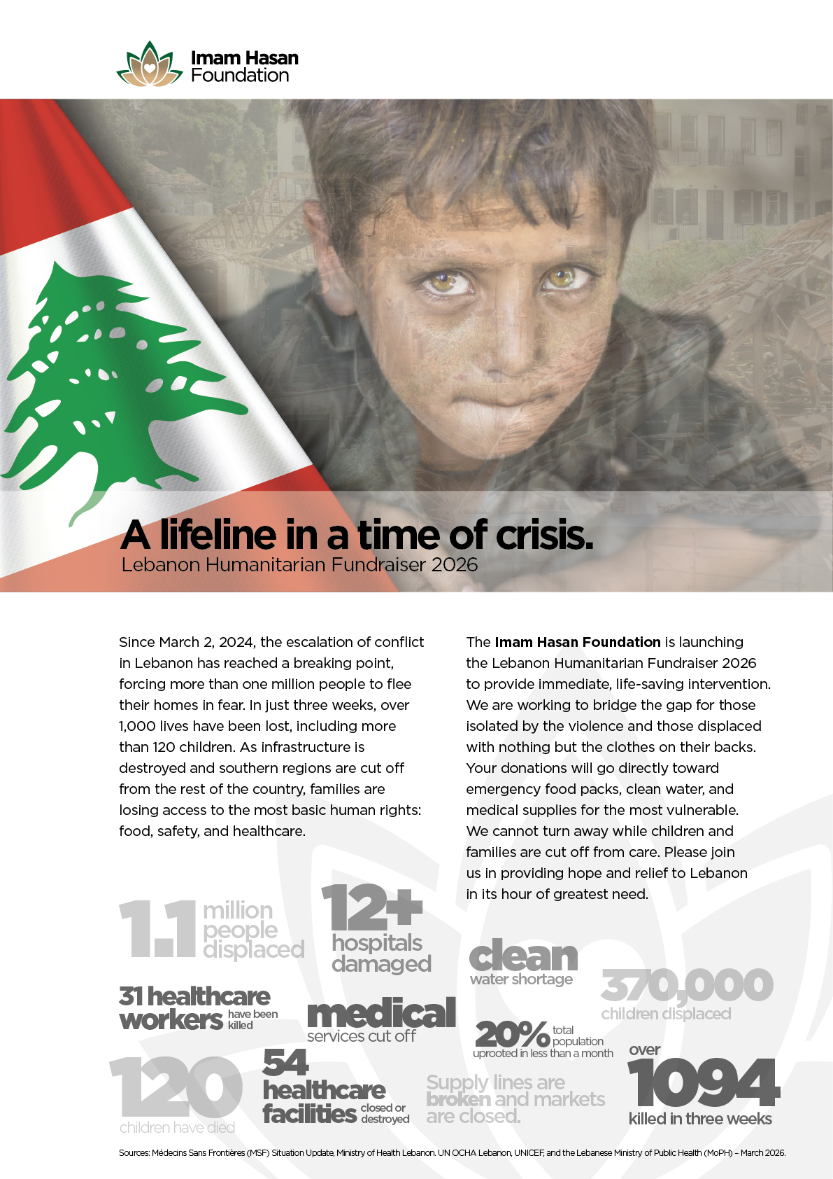 Imam Hasan Foundation in conjunction with sponsoring communities request your support and attendance to the 2026 Lebanon Humanitarian Fundraiser, to be held on